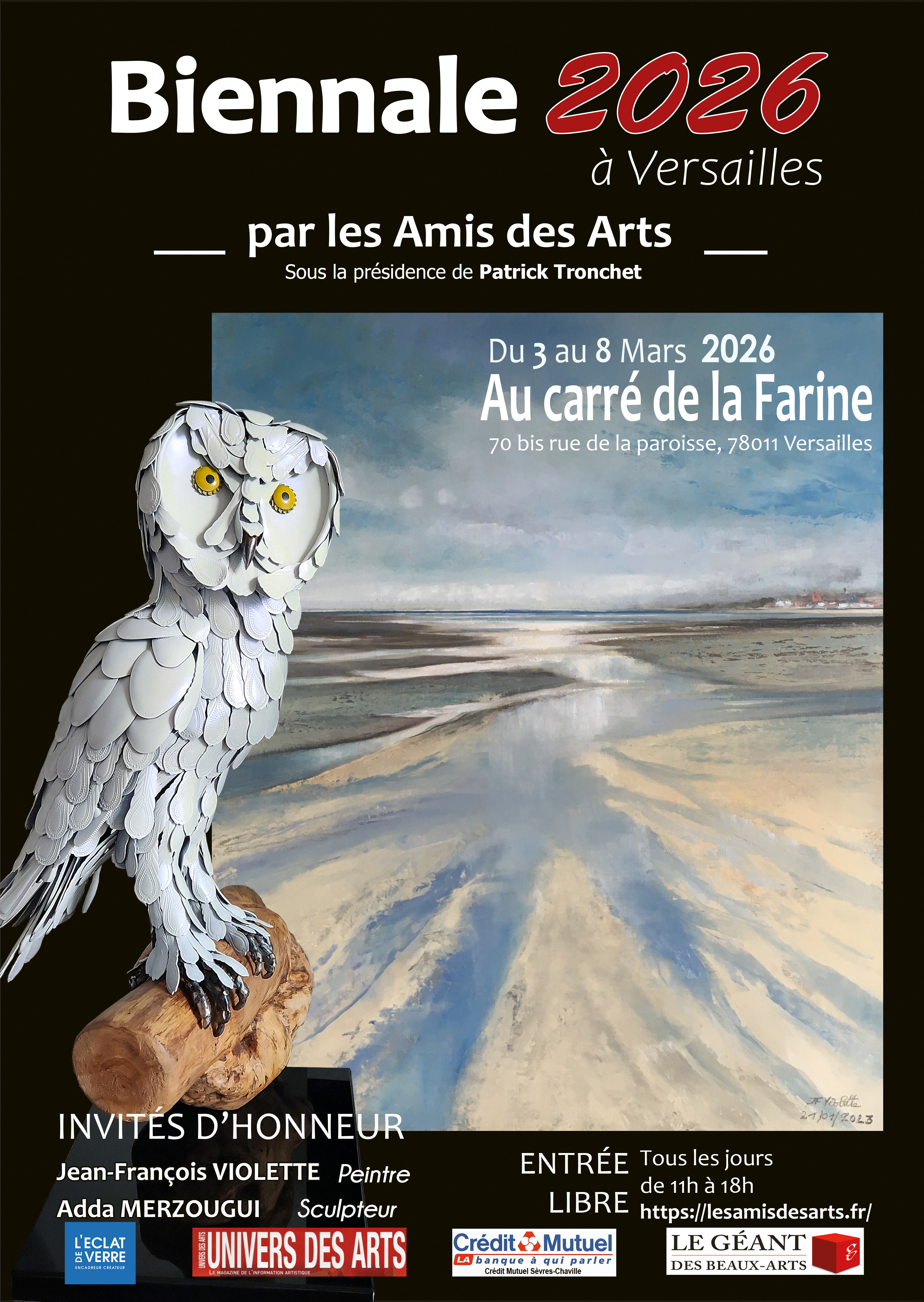 Affiche Biennale 2026 au carré à la Farine à Versailles--invite d'honneur VIOLETTE jean françois Peintre & MERZOUGUI adda Sculpteur Métal